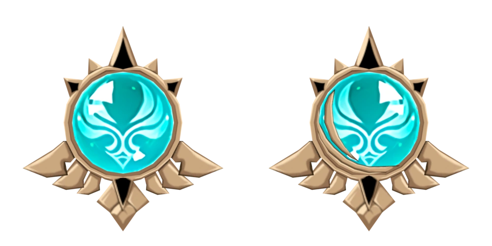 La Visión típica de Fontaine tiene forma de orbe. Está incrustada en un borde delgado con forma de dos cintas con diseños ornamentales de conchas en los lados. Según la alineación Arkhe del personaje, hay dos variantes:
