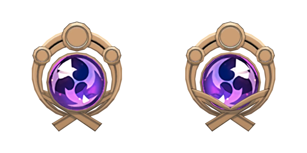 - La Visión de Xingchiu tiene pequeños diamantes en lugar de las flechas en las esquinas.