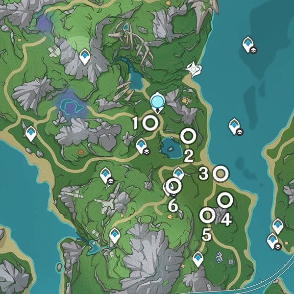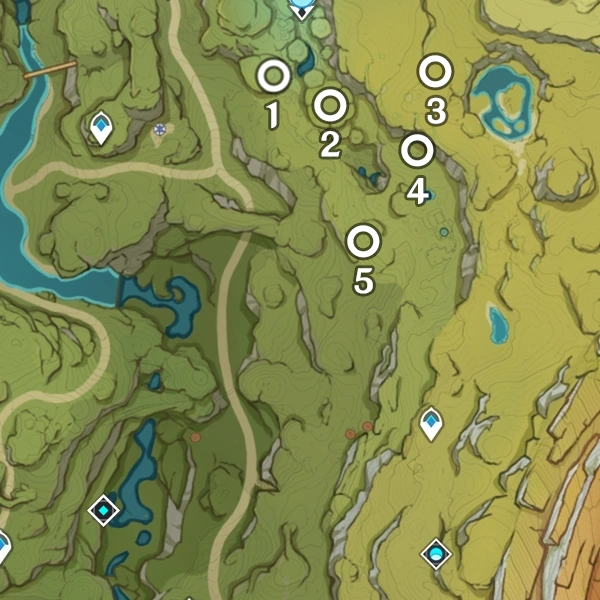 地脈の花芽の場所はグループになっており、毎日リセットされるたびに、各地域の「蔵金の花」と「啓示の花」の最初の場所は、選択されたグループの最初の場所になる。グループの名前は大まかな場所にちなんでいます。特に指定がない限り、花から報酬を受け取った後、グループ内の次の場所に移動する。その場所がすでに他のタイプの花で占められている場合は、その次の場所が選ばれる。ほとんどの花は遷移先が決まっているが、複数の遷移先を持つものもある。
