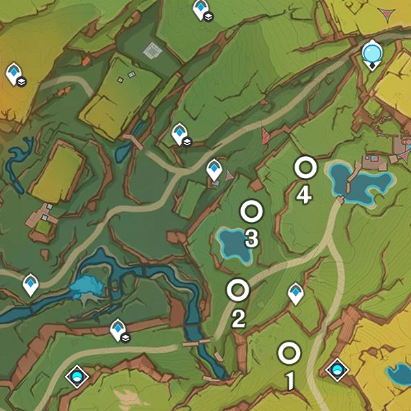 すべての敵を倒すと、地脈の花が出現する。この花芽を活性化させて報酬を得るには、天然樹脂20個か濃縮樹脂1個を消費する。一度、花芽を完成させ、その花を活性化させると、同じ地域の別のエリアに別の花芽が出現する。完成したが未開封の花は、デイリーリセットが行われるまでその場所に残り、新しい花芽は生まれない。