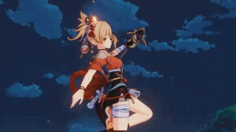 ภายในช่วงเวลาต่อเนื่องของ Niwabi Fire-Dance เมื่อโจมตีปกติของ Yoimiya ถูกเป้าหมาย จะมอบโบนัสความเสียหายไฟให้แก่ Yoimiya 2%