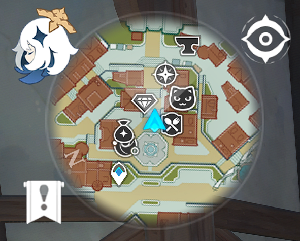 Phần lớn Phân Khu đều có tên trên Bản Đồ. Khu Vực hiện tại và Tiến Độ Thám Hiểm được hiển thị ở phía dưới cùng bên phải của Bản Đồ. Khi thu nhỏ hoàn toàn, Bí Cảnh và khu vực (với tỷ lệ phần trăm Tiến Độ Thám Hiểm) sẽ được hiển thị. Tỷ lệ phần trăm Tiến Độ Thám Hiểm chỉ hiển thị sau khi phần bản đồ được mở (Thất Thiên Thần Tượng hoặc Bản Đồ Điêu Khắc đã chạm).