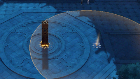 Thiên thạch cực lớn rơi xuống, gây Sát Thương Nguyên Tố Nham cực lớn cho kẻ địch trong phạm vi rơi, và khiến địch Hóa Thạch.