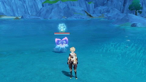 An aquatic life form that has embarked on a unique evolutionary track due to Fontaine's environmental factors. When under the effects of Cryo, it can unleash fiercer elemental attacks and possesses stronger defensive capabilities. If you use Elemental Reactions to remove its Elemental Shield, things should be easier to handle.