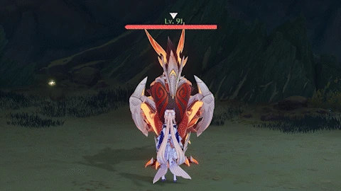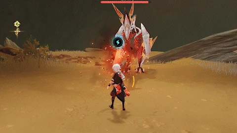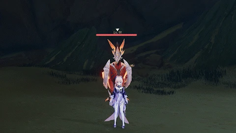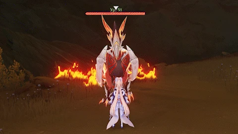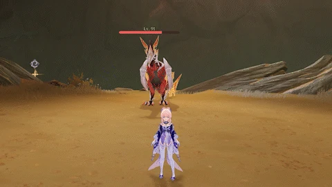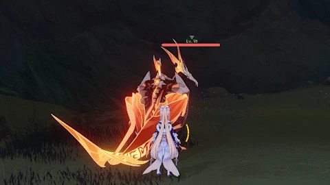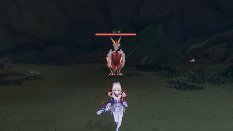 If the player is far away, flies towards the player while continuously dropping bombs from its wings, each dealing 80% ATK as Pyro DMG.