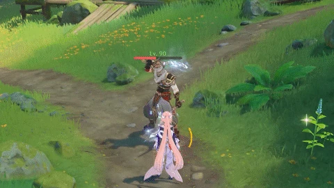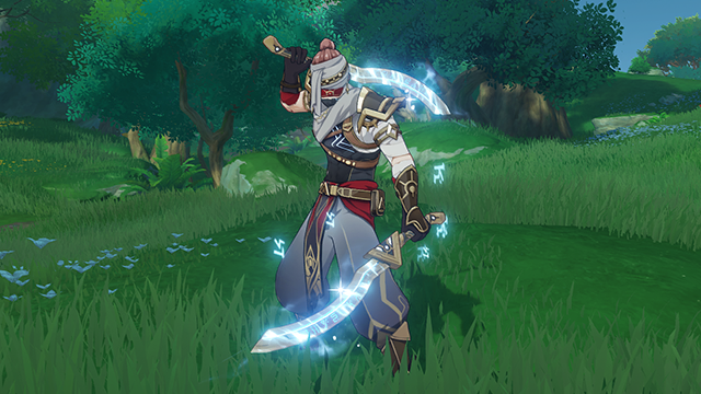 Connects his dual blades together and performs a sweeping slash, dealing 50% ATK as Cryo DMG.