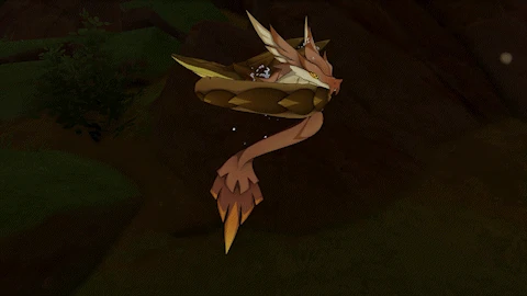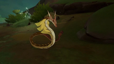 Flying serpents do not truly possess the ability to fly: their ability to hover seems to derive from their bird-like hollow bones and the sparkle of Anemo that imbues them with a subtle influence over the wind. The desert is a far way from the nation of Anemo, but its lands are still ever-graced by gales intent on eroding everything. Everything, from cities to history, will eventually be razed to sand grains by the winnowing currents that drift over the Great Red Sand. Only creatures such as the flying serpents, which have learned to live with the wind, can continue to survive in the desert long after all has been reduced to dust.