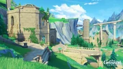 It is the area where the eponymous Fontaine Research Institute is located. Years before, most of the institute was destroyed in an explosion caused by Edwin Eastinghouse's research into Arkhium, leaving behind structures such as Allogravity-Condensed Water Bodies floating in the air. The institute is also the site of the Experimental Field Generator boss.[1]