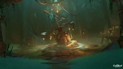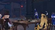| Game Venue | Game Venue was a set put together by Florian for a Tabletop Troupe campaign about the Marechaussee Hunters. It is comprised of a single room with large table hosting the roleplay game and tea cups, next to snack cart and cupboard, along with other tables, crates, cages, and a cooking pot. Beyond a metal gate, there is an in-accessible walkway. The entrance has a wind-trail and signboard pointing to the cliffside. It can only be accessed during Buried Honor in Clorinde's Story Quest, Rapperia Chapter: Act I - Silent Night. |