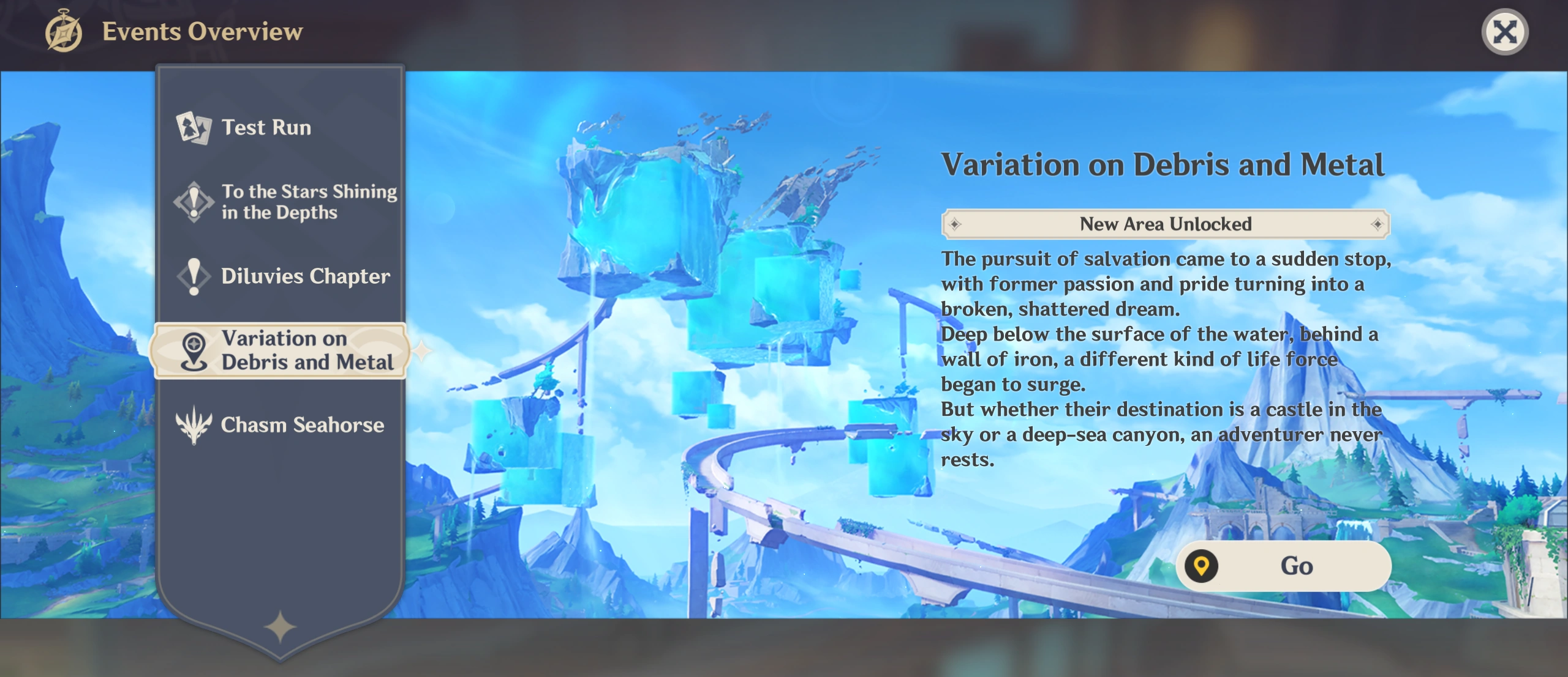 - ...The island is far away from Fontaine's waters, and perhaps that's why it has been left neglected for so long... If I manage to discover the Faded Castle of legend there, I might find answers to the many questions that vex me...