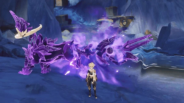 Periodically enters a Gloomveiled state, increasing its RES to all DMG except Electro by 50%, enhancing its attacks, and gaining the ability to relocate by disappearing and reappearing, but also losing its immunity to Electro (Electro RES in this state is 100%). A progress bar will appear with a maximum of 100 (150 in the Spiral Abyss). When the progress bar is fully filled, the Gloomveiled state will end. The progress bar gains charge via the following means: