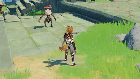 | Normal Attack Performs up to 4 consecutive shots with a bow. Charged Attack Perform a more precise Aimed Shot with increased DMG. While aiming, stone crystals will accumulate on the arrowhead. A fully charged crystalline arrow will deal Geo DMG. Plunging Attack Fires off a shower of arrows in mid-air before falling and striking the ground, dealing AoE DMG upon impact. | ||