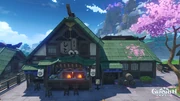 | Amenoma Smithy | Amenoma Smithy is located on the eastern end of Inazuma City, in Hanamizaka. Its members practice the Amenoma Art, one of the bladesmithing schools in the Raiden Gokaden. |