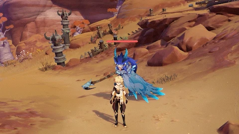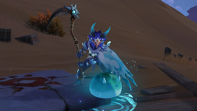 If the player is far away, charges at the player and swings its scythe once, dealing 100% ATK as Hydro DMG.