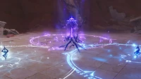 Conjures nodes that charge up and form elemental rings, which explode and each deal 200% ATK as DMG of their respective elemental type if allowed to fully charge. This is indicated with a marker that rotates clockwise. During this attack, the Iniquitous Baptist's RES are increased by 200%. Destroying all nodes before they fully charge will briefly paralyze the Iniquitous Baptist. This attack is only used in the overworld.