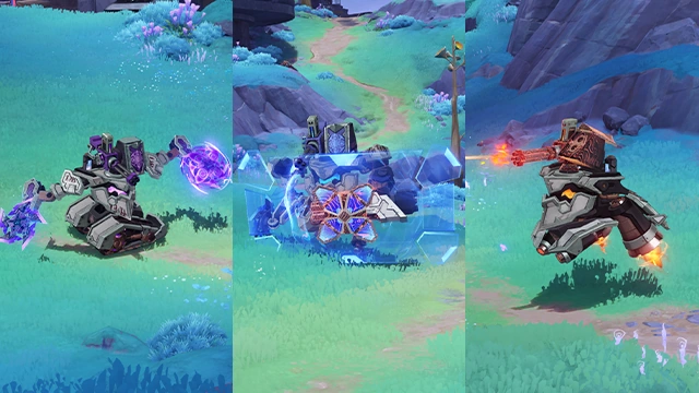 A heavily armed ship that cruises on land and, thanks to certain modifications, can harness the power of kuuvahki to deploy special functions. Attack it a certain number of times with Electro-Charged or Lunar-Charged reactions while it's using kuuvahki to stop it in its tracks.