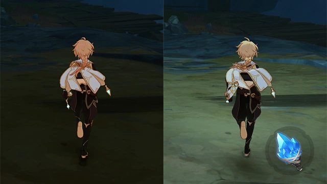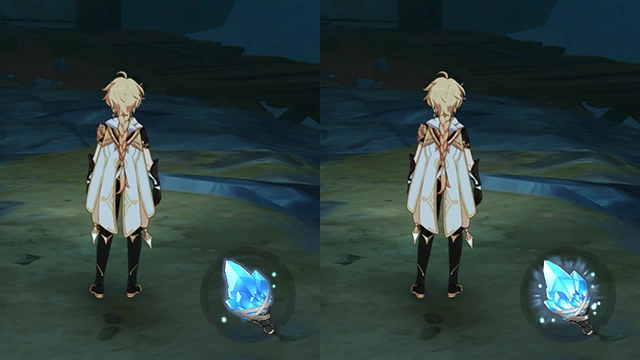When the gadget is equipped in the Underground Mines, an energy gauge appears above the Health bar. As long as at least one energy is inside the gauge, the Lumenstone Adjuvant can activate specific light-sensitive mechanisms, and it will also glow and illuminate the area surrounding the character. How much this improves visibility in The Chasm is dependent on the player's Brightness setting: The higher the Brightness setting is, the lighter the environment colors are, so the less the light from the Adjuvant helps.