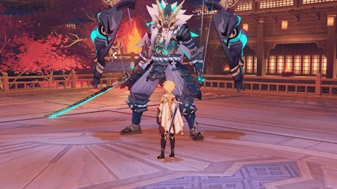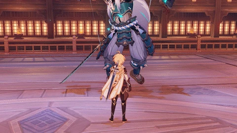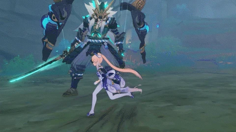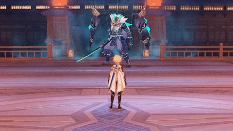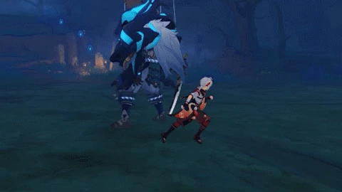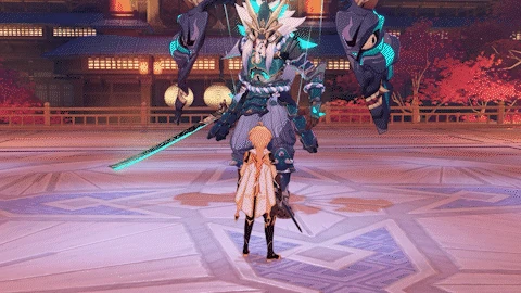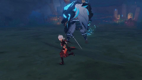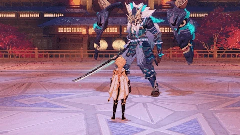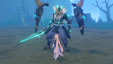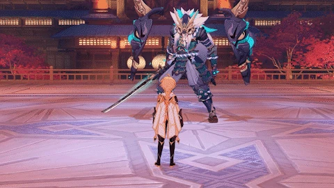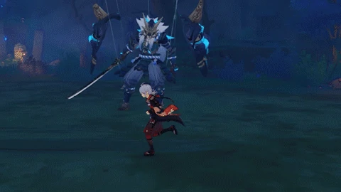 If the Fury meter reaches its maximum, enters Iai stance and charges, dragging the player into its area of effect, before quickly slashing around itself, dealing 100% ATK as Anemo DMG. The Shadowsword appears close to Maguu Kengou and slashes over a larger area, dealing 100% ATK as Cryo DMG. | |