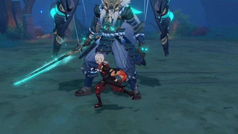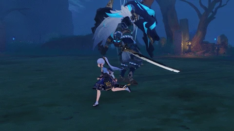 Maguu Kengou and a Shadowsword each performs up to 3 consecutive sword slashes at the player. With each slash, Maguu Kengou deals 50% ATK as Anemo DMG while the Shadowsword deals 30% ATK as Anemo DMG or Cryo DMG.