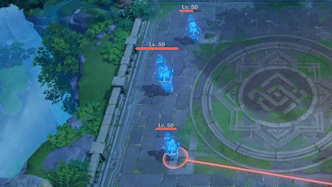 Grants a Hydro shield to nearby Mechanici. The shield can be destroyed using Elemental Reactions, with Dendro being the most effective.
