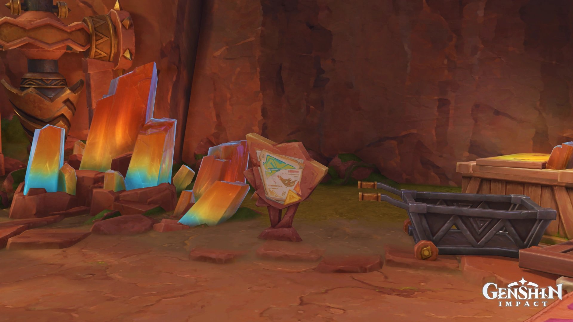 The Mine Message Board is a point of interest and a bulletin board located in "Children of Echoes," Tequemecan Valley, Natlan. It is located next to Apoxpalon.