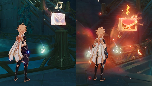 Use the power of the "symphony" to resonate with activated bookshelves. Hold to unleash a Play Soundwave that will cause the grimoires to fly off the shelves, and Press to unleash a Pause Soundwave that will stop them in mid-air.