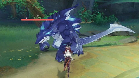 | Forms 3 wheels of water at the tip of its tail before launching them at the player in a wide spread, dealing 30% ATK as Hydro DMG along their paths. | |