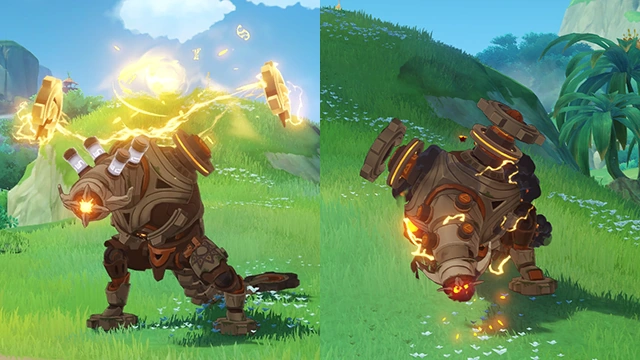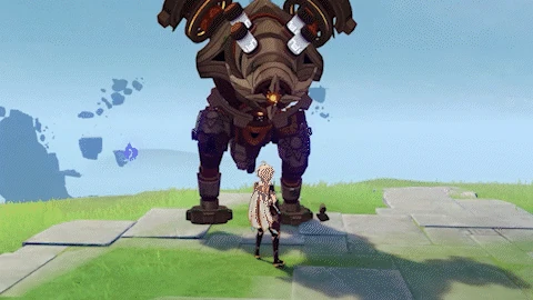 A ruin machine that can absorb energy and hurl it back as an attack. The Ruin Drake: Earthguard can periodically release a dangerous torrent of energy and increase its own Elemental RES against the previous main type of Elemental DMG it suffered. When it is preparing to unleash this energy torrent or when it is preparing for a special sprint attack, the core on its head will be exposed... Take this opportunity to attack the core, and you may be able to immobilize this creature and undo its Elemental RES boost...