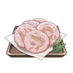 Sakura Shrimp Crackers is a food that the player can cook. The recipe for Sakura Shrimp Crackers is obtainable from Shimura Kanbei at Shimura's for 5,000 Mora.