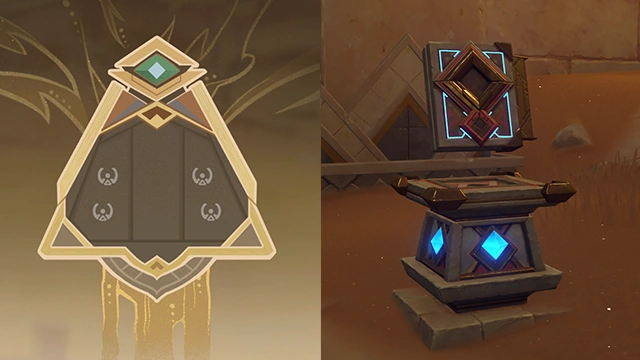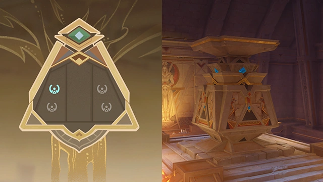 These structures known as Plinths of the Secret Rites may be found within King Deshret's ruins. Use them to control certain mechanisms within the ruins.
