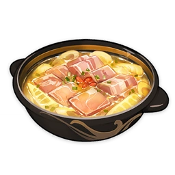 Slow-Cooked Bamboo Shoot Soup is a Special Dish that the player has a chance to obtain by cooking Bamboo Shoot Soup with Zhongli. The recipe for Bamboo Shoot Soup is obtainable from Verr Goldet for 5,000 Mora.