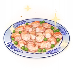 Stir-Fried Shrimp is a Food item that the player can cook. The recipe for Stir-Fried Shrimp is obtainable from Verr Goldet at Wangshu Inn for 5,000 Mora.