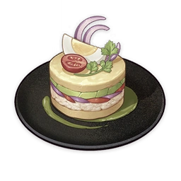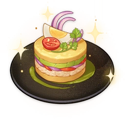 Stuffed N' Mashed Potatoes is a food item that the player can cook. The recipe for Stuffed N' Mashed Potatoes is obtainable from an Exquisite Chest in Natlan.