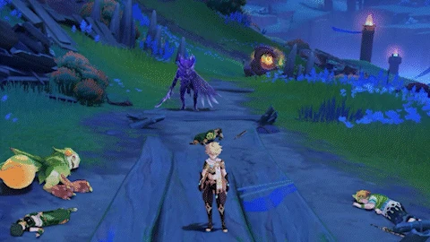 When entering battle, takes the form of an Anemo Hilichurl Rogue. While in this form, the Tenebrous Mimiflora possesses a Void Ward which grants it immunity to DMG until destroyed and has a durability of 70. The durability will reduce by 1 when hit by an Elemental attack, or 3 when hit by a Nightsoul-aligned attack. When durability is depleted, the Tenebrous Mimiflora will return to its true form and become briefly stunned, but will re-transform after some time. However, when generating the Void Ward for the second time, then from the third time onward, its durability will be reduced to 35 and 14 respectively. | |