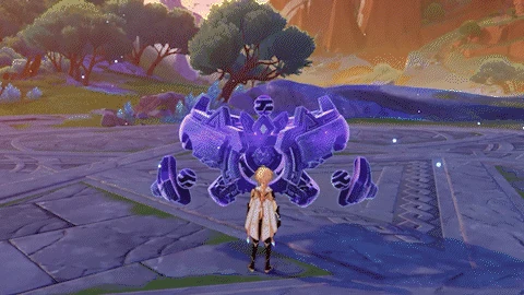 When entering battle, takes the form of a Secret Source Automaton: Hunter-Seeker. While in this form, the Tenebrous Mimiflora possesses a Void Ward which grants it immunity to DMG until destroyed. Depending on the form it takes, the Void Ward will have a durability of 105. The durability will reduce by 1 when hit by an Elemental attack, or 3 when hit by a Nightsoul-aligned attack. When durability is depleted, the Tenebrous Mimiflora will return to its true form and become briefly stunned, but will re-transform after some time. However, when generating the Void Ward for the second time, then from the third time onward, its durability will be reduced to 53 and 21 respectively. | |