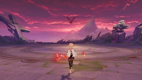 | Flies high into the air and dives towards the player, slicing with her scythe to deal 100% ATK as Pyro DMG. If below 70% of her Max HP, follows up with a wing slash, dealing 70% ATK as | |