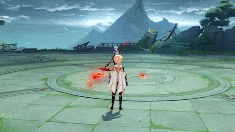 | Dashes quickly at the player and slashes once, dealing 70% ATK as Pyro DMG. If below 70% of her Max HP, she may follow up with a hooking pull, dealing 80% ATK as Pyro DMG. | |