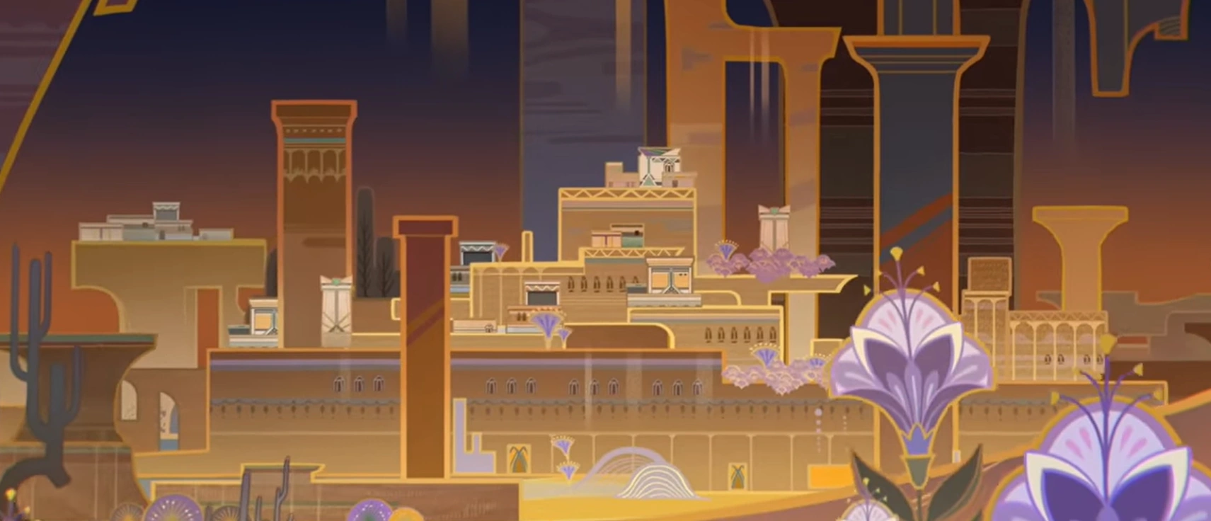 Tulaytullah, the City of Sapphire, was an ancient city-state in the Hypostyle Desert, Great Red Sand, Sumeru. Its prominence in history began with the priest Hermanubis, who established the original Temple of Silence there and led it to become known as a city of wisdom. However, the subsequent wars between city-states and Eremite tribes after the collapse of King Deshret's civilization caused the members of the Temple of Silence to abandon Tulaytullah. With their departure, Tulaytullah was drawn into the violence; it eventually reached dominance through military conquest, but this soon led to its own downfall.