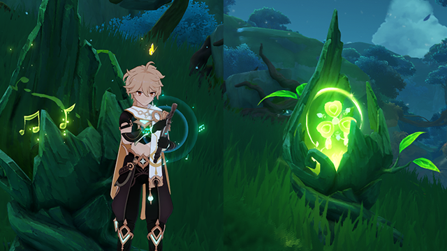 Vintage Lyre is a gadget that can be obtained during the World Quest The World of Aranara in Series Aranyaka: Part II - Dream Nursery. Throughout the World Quest Series Aranyaka, more songs will be unlocked along with new functionality.