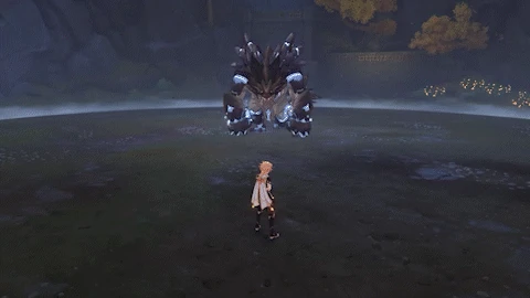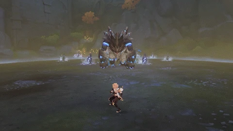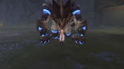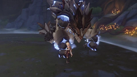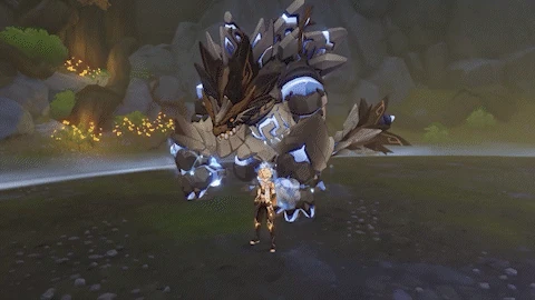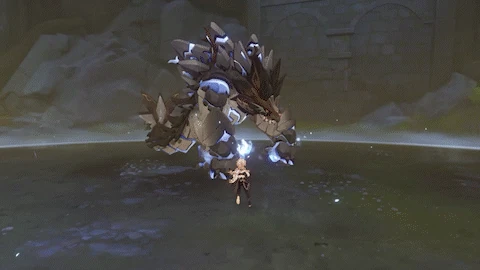 | If the player is behind the Primo Geovishap, looks behind itself, then performs a quick spinning attack, dealing 80% ATK as Geo DMG. This attack ignores dash i-frames. | |