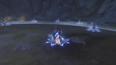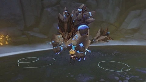 Scatters 8 Elemental-Infused Stones around itself. It then changes its infused element and slams the ground, dealing 80% ATK as Cryo DMG/Hydro DMG. When entering battle, the initial infused element is Cryo.