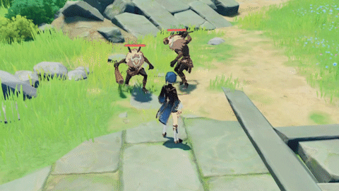 | Normal Attack Performs up to 5 rapid strikes. Charged Attack Consumes a certain amount of Stamina to unleash 2 rapid sword strikes. Plunging Attack Plunges from mid-air to strike the ground below, damaging opponents along the path and dealing AoE DMG upon impact. | ||