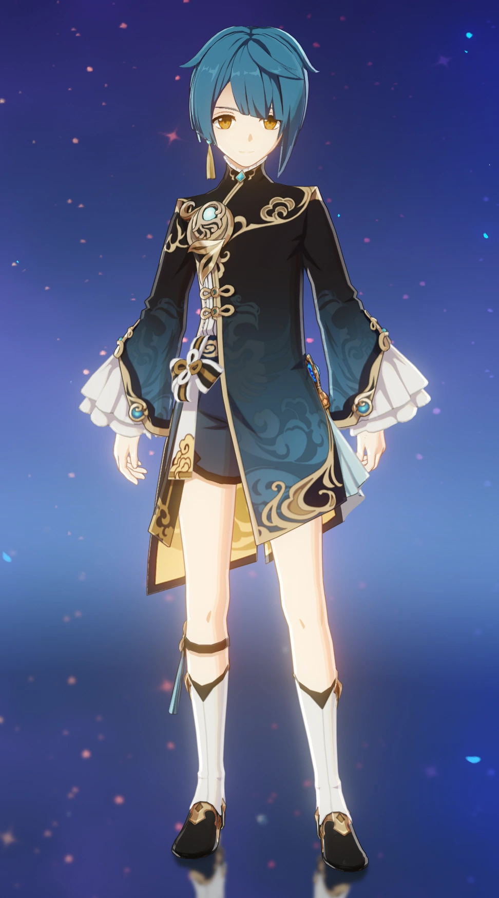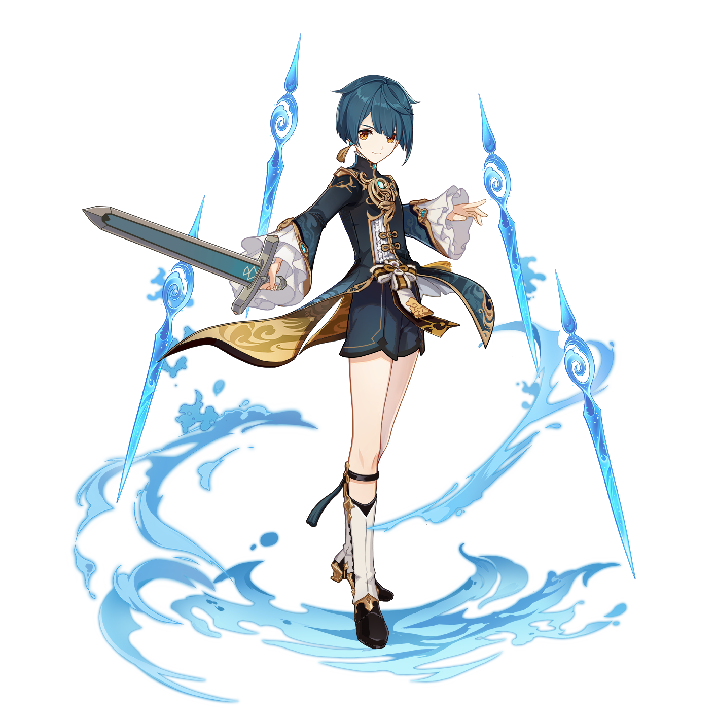 He is the second son of the Guild Manager of the Feiyun Commerce Guild, an influential group in Liyue, and is also a self-proclaimed practitioner of the Guhua Clan's arts. Also an avid reader, Xingqiu aims to be the embodiment of chivalry like the heroes from the books he reads; however, this belies his knack for mischief.