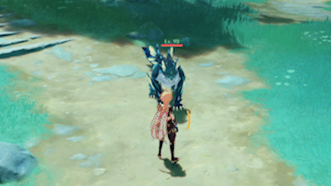 | Performs a flip, launching a wind blade from its tail towards the player, dealing 80% ATK as Anemo DMG on hit. | |